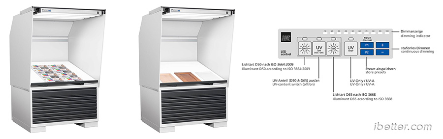 可切换光源:根据需求在 D50 和 D65 之间切换,符合ISO 3664和ISO 3668