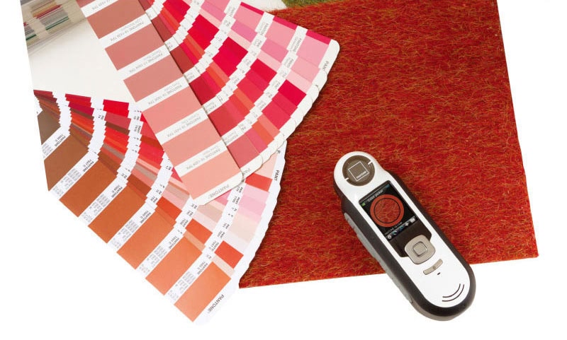 此时,如果设计师通过标准灯箱比色,找到了最终呈现出来的色彩感觉,再用色卡对色,找到了色号,说:“我要Pantone 2420 C。”